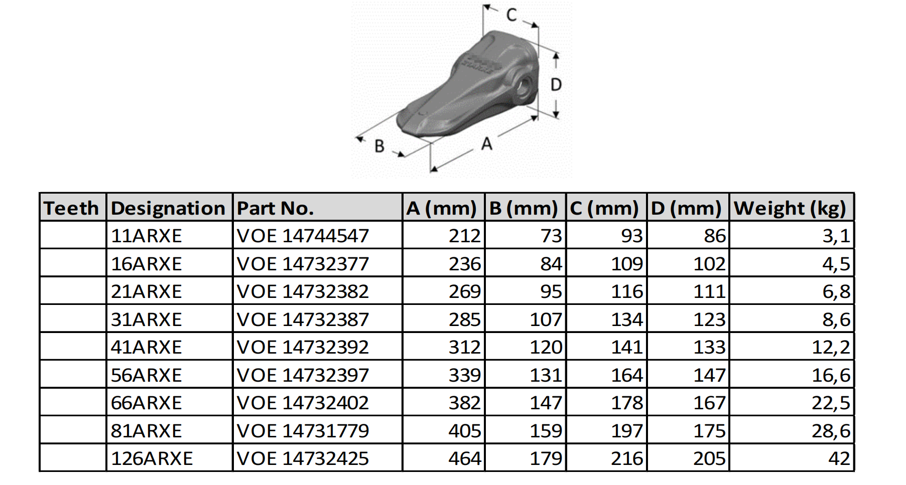 bucket tooth