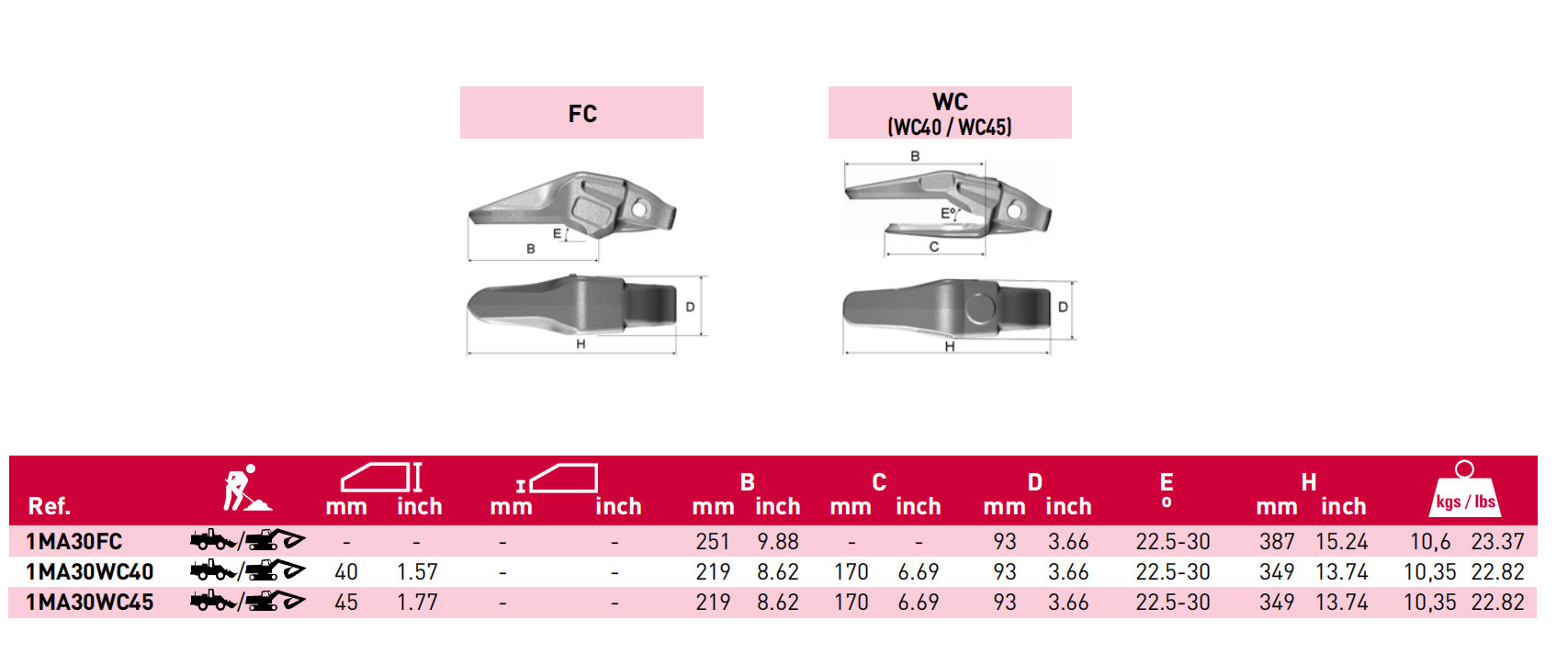 | PC18-2 | PC20-5/7 | PC30-5/6/7/8 | PC40-5/6/7 | |