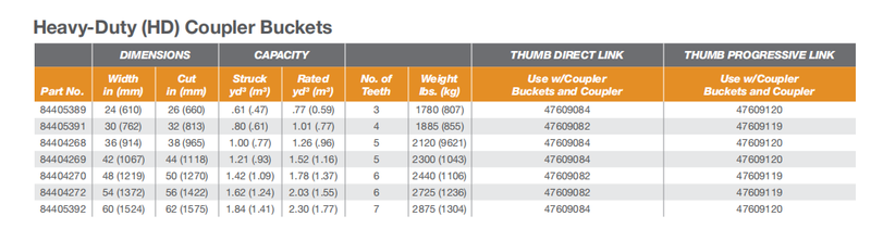 | Bucket Shape | Straight or spade lip, vertical shrouds, optional weld-on lip shrouds or J-bolt lip shrouds. Enhanced bucket shap allows material to flow more easily. Tapered bucket sidewalls allow for easy dumping of sticky material. |