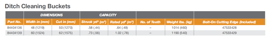 | Bucket Shape | Straight or spade lip, vertical shrouds, optional weld-on lip shrouds or J-bolt lip shrouds. Enhanced bucket shap allows material to flow more easily. Tapered bucket sidewalls allow for easy dumping of sticky material. |