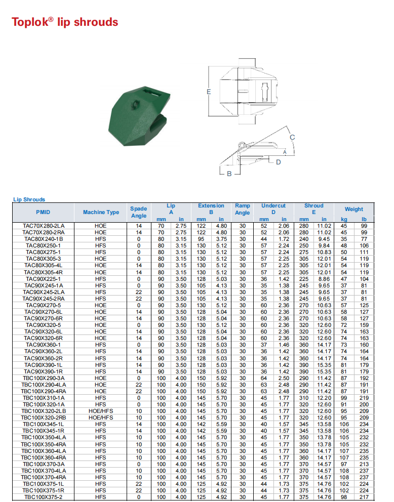 | 210 (EC210) | 240 (EC240) | 290 (EC290) | 360 (EC360) | |